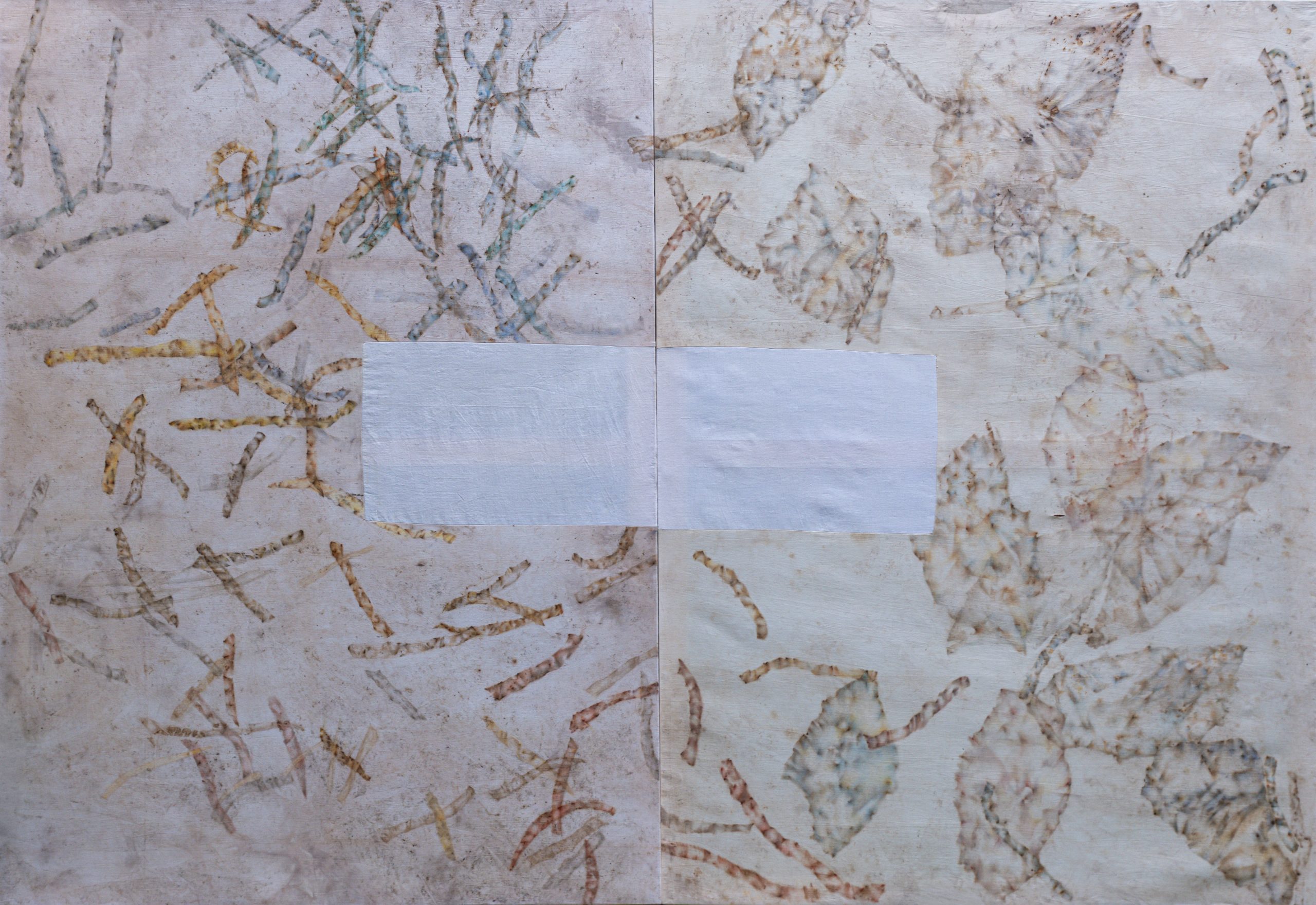 A sinistra si frantuma in particelle leggere, pensieri incompiuti, tracce che cercano una direzione.